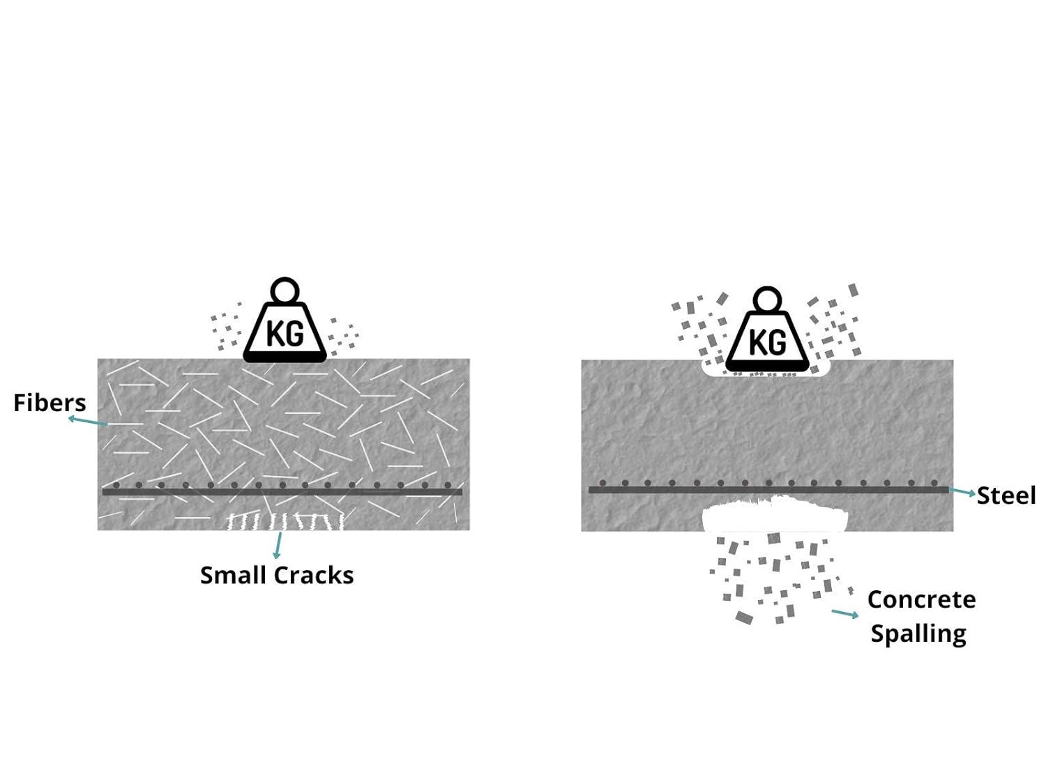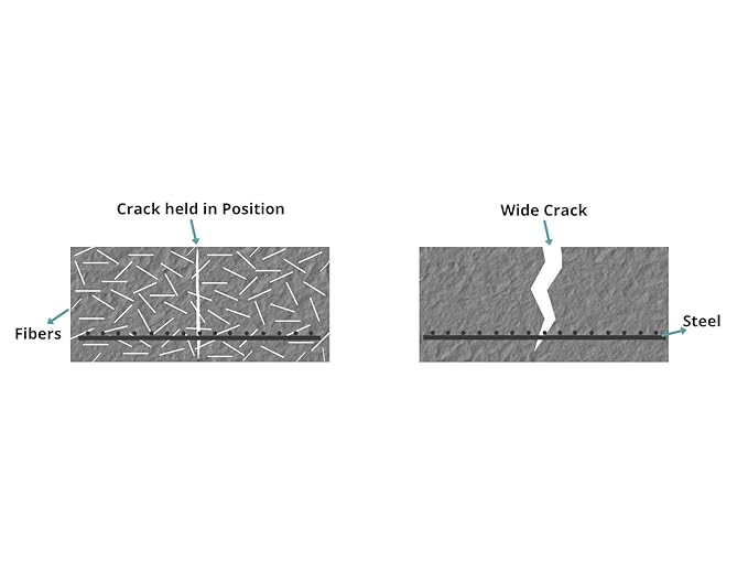 აკონტროლებს და ამცირებს პლასტმასის შეკუმშვის ბზარებს და თერმულ ბზარებს.